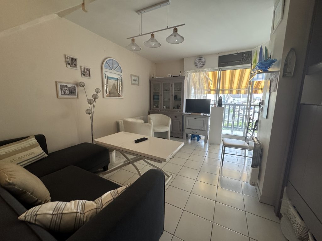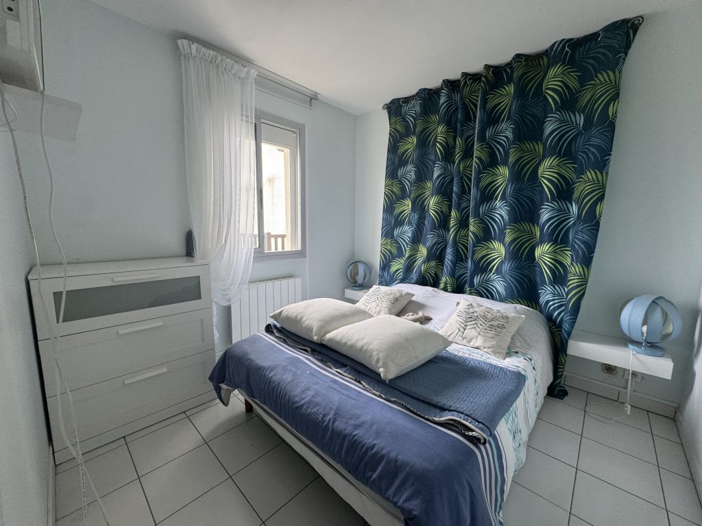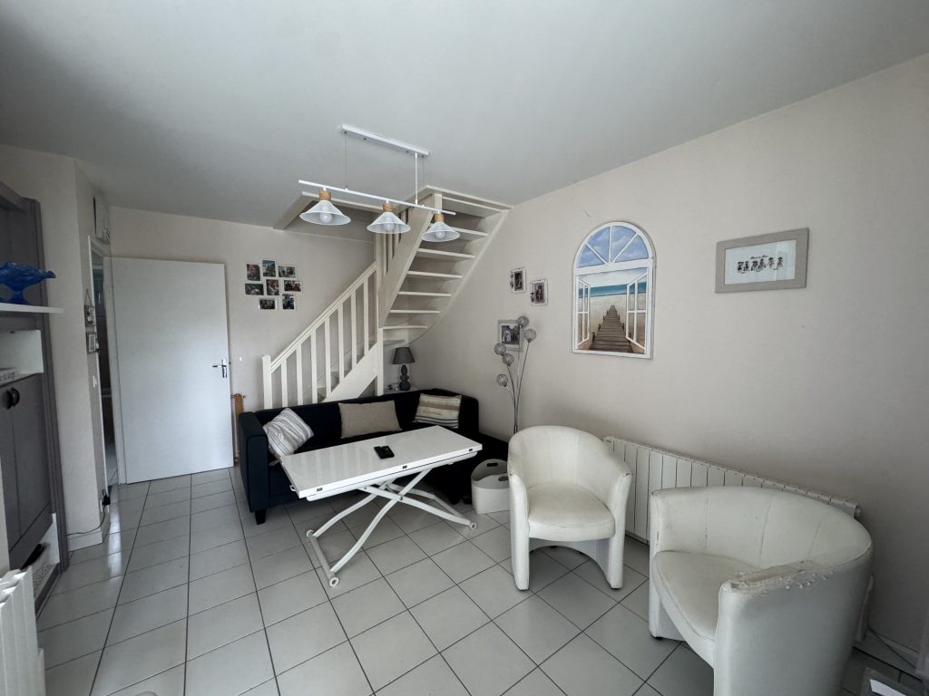 Dans copropriété sécurisée, trois pièces DUPLEX se composant de plain-pied une entrée desservant un séjour avec cuisine ouverte aménagée ouvrant sur grand balcon PLEIN OUEST, une chambre, une salle de bains et WC séparé.