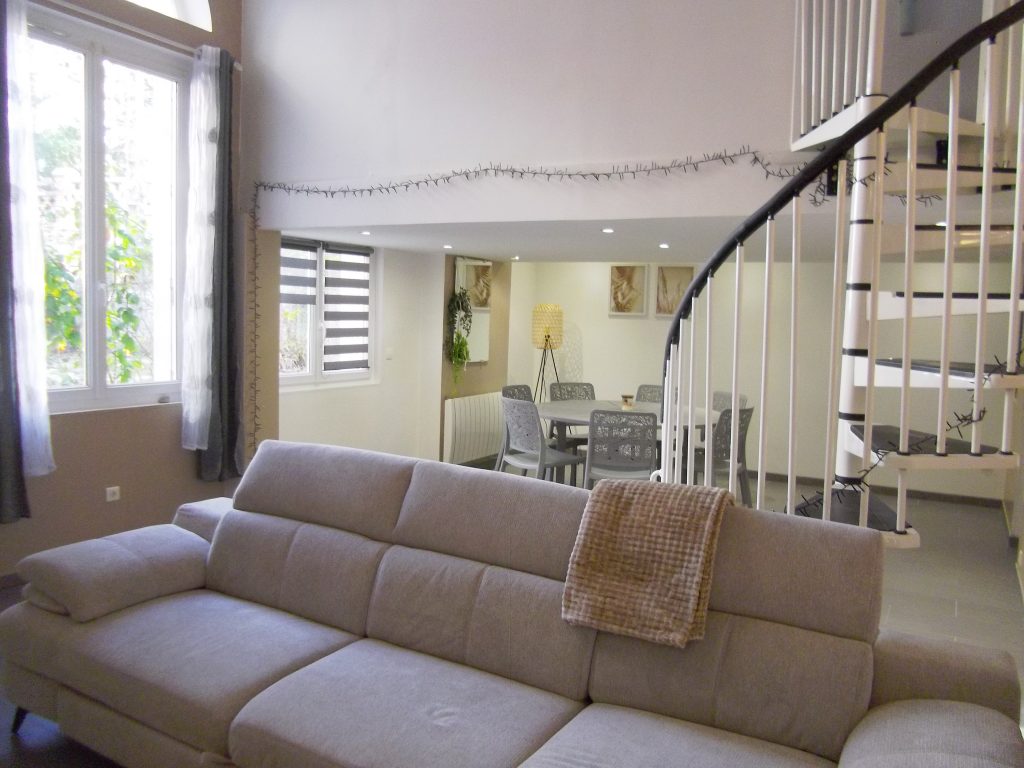 Il se compose au rez-de-chaussée d’un salon séjour d’environ 35 m² une cuisine indépendante aménagée et équipée, un couloir desservant une grande et jolie chambre et une salle d’eau avec WC.