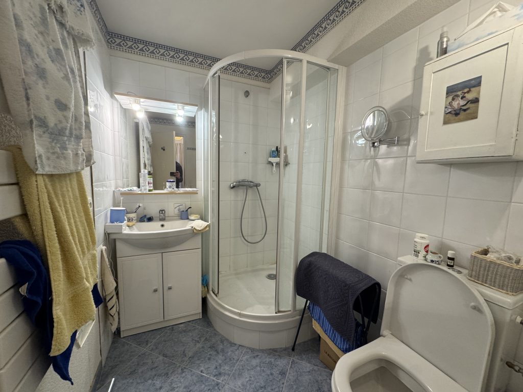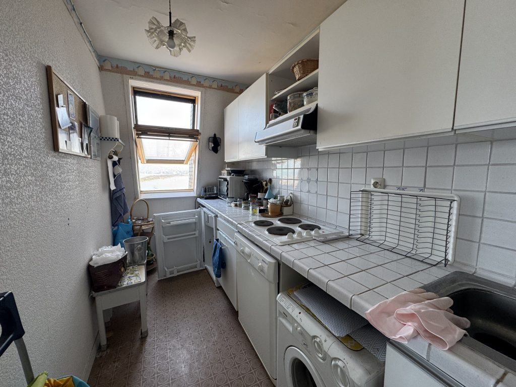 L’appartement se compose d’une entrée avec placard desservant une salle d’eau avec WC, un séjour/salon lumineux avec accès à une double terrasse exposée Mer et Est, une cuisine séparée, ainsi qu’une chambre avec accès terrasse offrant une vue imprenable entre terre et mer.