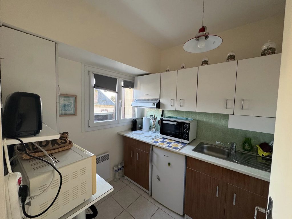 En deuxième rang de mer, situé au 2ᵉ étage d’une résidence, ce studio se compose d’une entrée desservant une pièce de vie lumineuse ouvrant sur un balcon, d’une cuisine, ainsi que d’une salle de douches avec WC.
