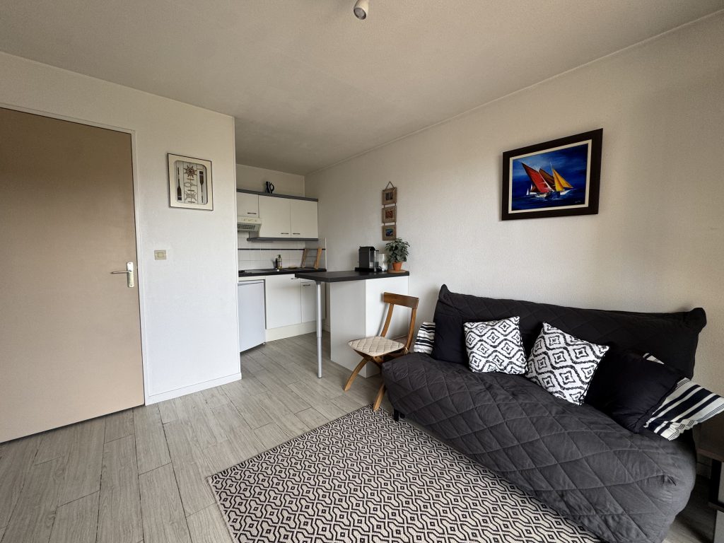 L’agence Blacher vous propose à la vente cet appartement 2 pièces vue mer se composant d’un séjour salon avec coin cuisine donnant sur un balcon avec un bel aperçu sur la mer à l’ouest, une chambre et salle de douches et un cabinet de toilette indépendant.