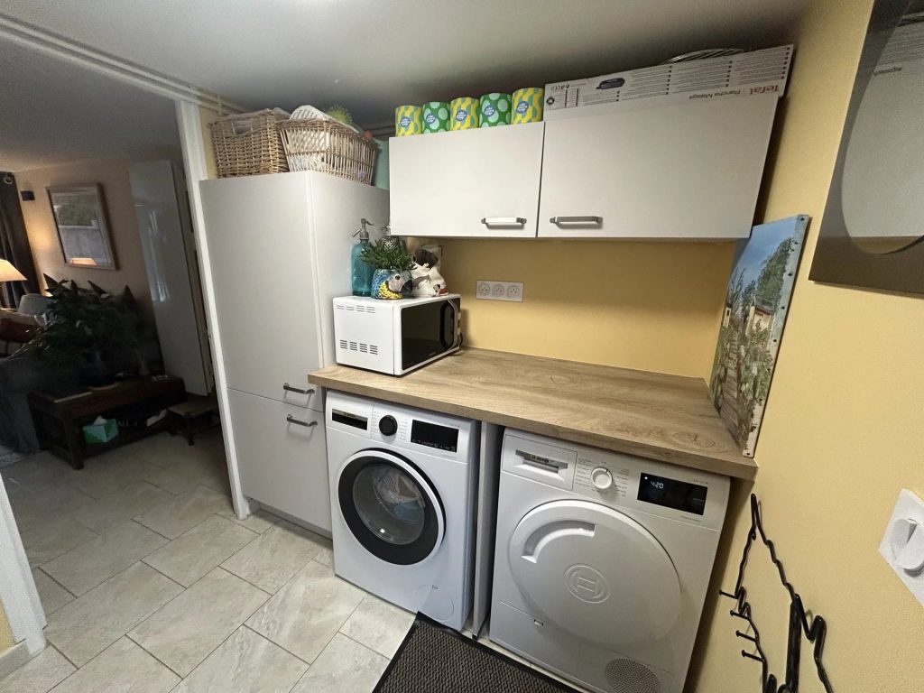 Il y a une grande buanderie dans le jardin pour ranger vélos et matériel extérieur.